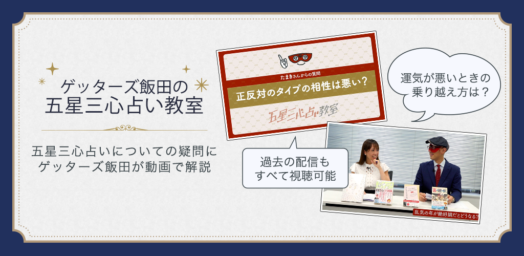 "연예계 최강 점쟁이"라고 불리며 TV, 라디오, 잡지 등 다양한 미디어에서 활약중인 겟타즈 이이다가 완전 감수한 공식 운세 사이트!
