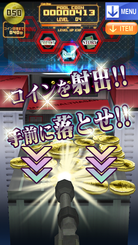 タップしてコインを射出し、手前に落としたコインを貯める