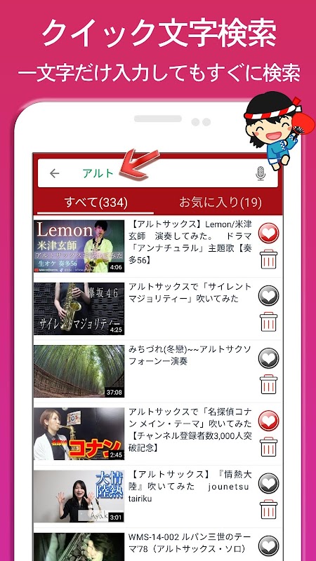 クイック検索機能(調べたい曲のキーワードを入力するだけで、瞬時に検索できます。)