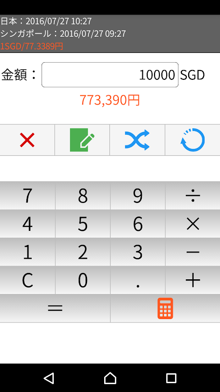 また、ボタン「SGD⇔円」を押すことにより、日本円からSGDへの変換も可能です。