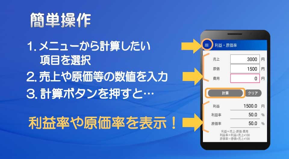 쉽게 입력! 이익과 원가율 및 손익 분기점을 자동 계산! 매출과 원가를 입력하는 것만으로 알고 싶은 수치를 자동으로 계산할 수 있습니다.