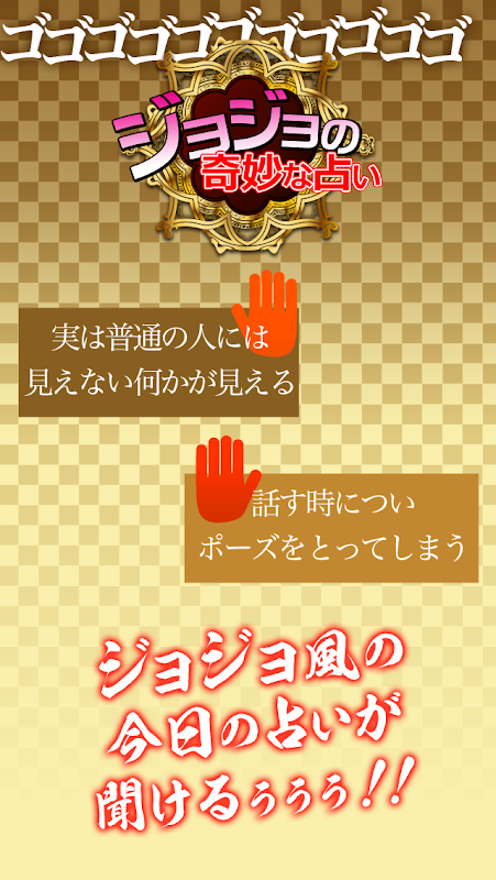 ジョジョの奇妙な冒険の3部の世界観の占いアプリです。