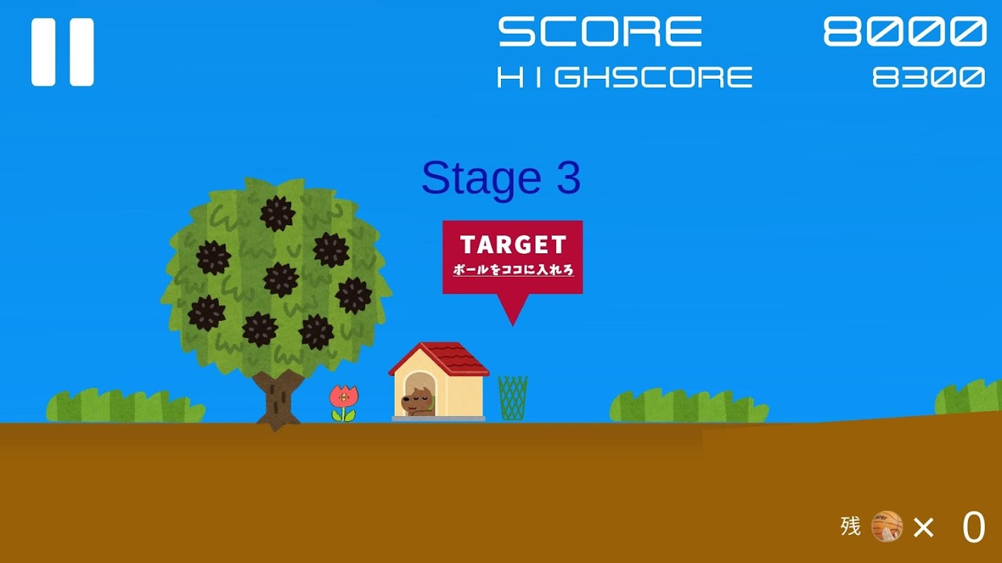 フリックでボールを投げて指定されたゴミ箱にボールが入ればステージクリア。