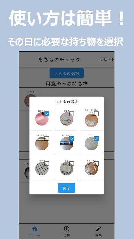 ・홈 화면에서 그 날에 있는 소지품을 선택해, 준비했는지 체크!