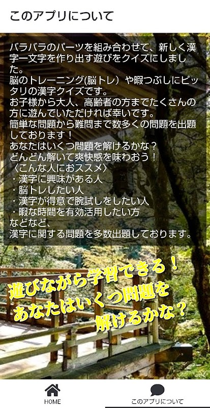 バラバラ漢字クイズゲーム。頭の体操 脳トレにもなる! 1.0.2
