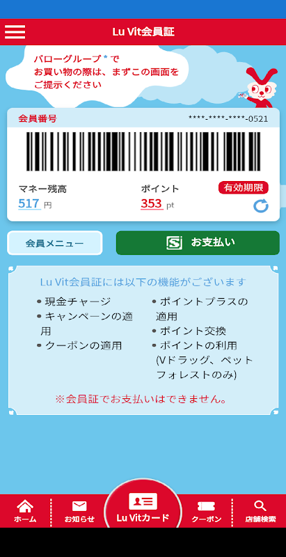 ・Lu Vit(루빗) 카드를 등록하면, 언제나 가는 점포를 마이 점포로서 등록할 수 있어, 홈 화면에서 점포 정보(전단지·알림)에 곧바로 액세스 할 수 있습니다.