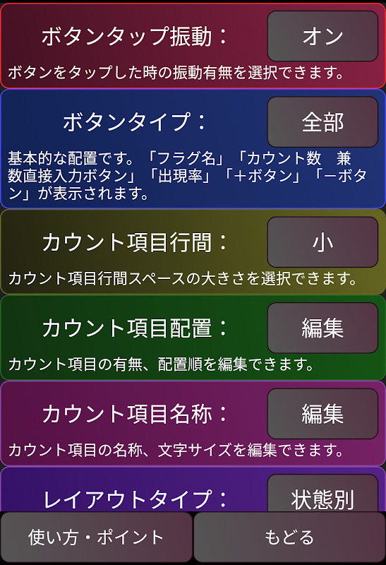 画面下部の「使い方・ポイント」ボタンをタップしてご確認下さい。
