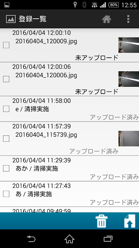 4. 체크 박스에 체크를 넣어 오른쪽 하단의 휴지통 아이콘을 터치하면 스마트 폰에있는 사진과 코멘트를 기록한 텍스트 파일을 삭제합니다.