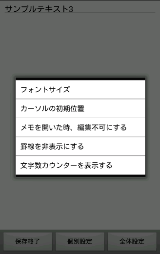 メモ編集画面カーソルの初期位置を「最初」「前回値」「最後」から選択する事が出来ます。