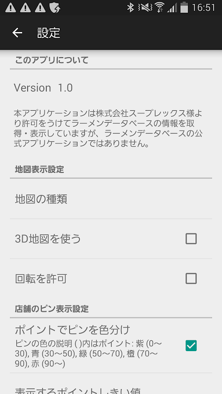 이 응용 프로그램에서 사용하는 정보는 사용자 참여형 전국라면 가게 데이터베이스 "라면 데이터베이스"(http://ramendb.supleks.jp/)에서 취득 · 표시하고 있습니다 만, "라면 데이터베이스"의 공식 응용 프로그램이 아닙니다 있으므로주의하시기 바랍니다.