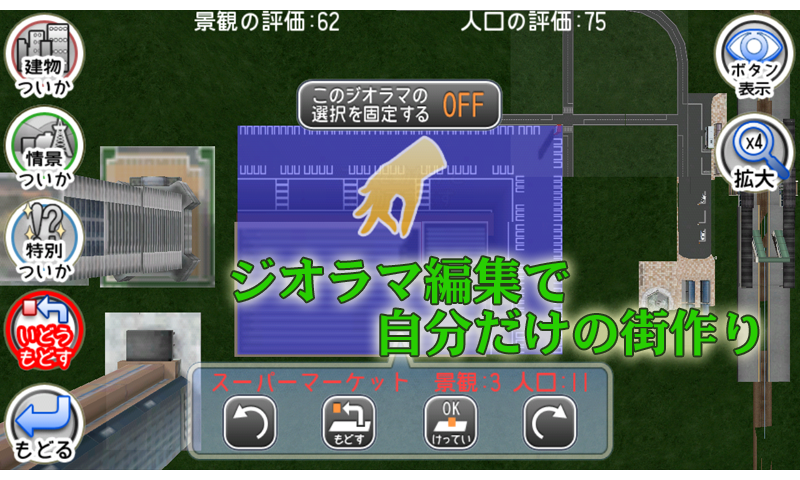 全てのマップはレールやジオラマ(ストラクチャ)を自由に編集可能で、田舎、大都市、