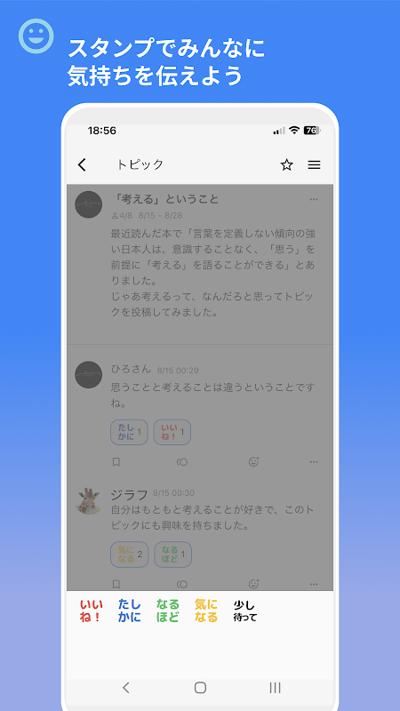 여기에서는 익명으로 안심하고 그룹 토론에 참가할 수 있습니다. 자신의 말로 말할 수 있어 본심으로의 의견 교환을 실현하고 있습니다.
