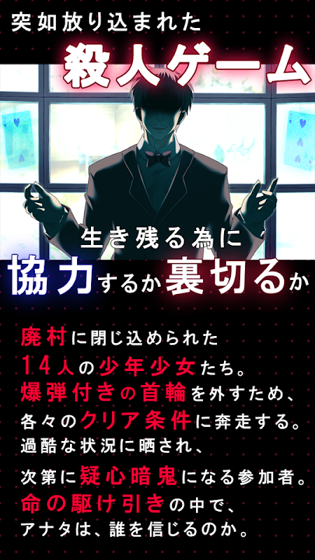 목걸이에 폭탄을 걸린 14명의 남녀에 의한 데스 게임! 지급된 아이템을 구사해 해제 조건 달성에 도전하는 서바이벌 어드벤처