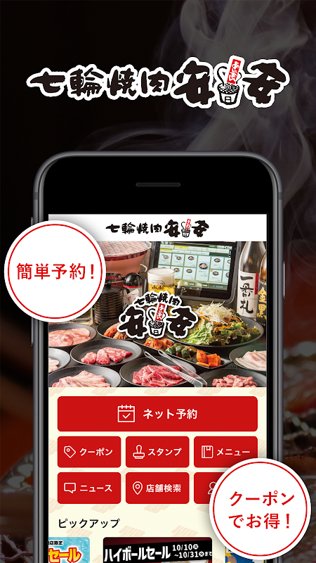 나나와 야키니쿠 안안의 공식 앱 앱에서 쉽게 예약 할 수 있습니다! 쿠폰 등 유익한 정보도 풍성! 스탬프를 모아 특전을 얻자!