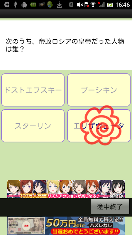 또한 일반인한다면 공부와는 관계없이 퀴즈 감각으로 세계사 지식을 늘려가는 ... 일일이 수 있습니다. 어쨌든 문제 수가 많기 때문에 질리지 않고 즐길 수 있습니다.