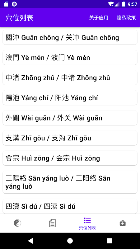 2. 경혈 목록에서 경혈을 선택하면 경혈 지도와 정보를 볼 수 있습니다.