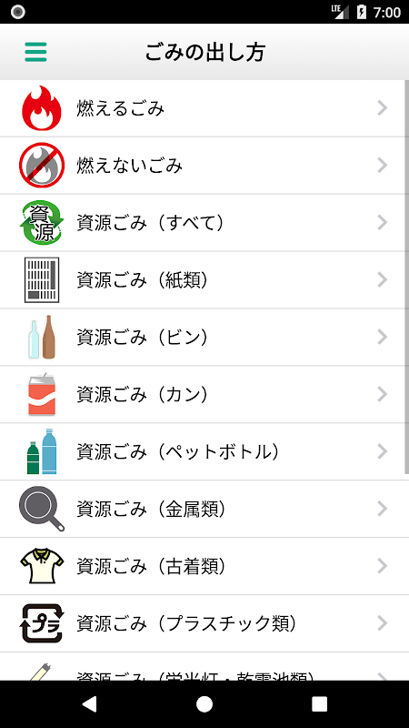 品目毎にごみの捨て方を確認できます。また、検索性の高い仕組みをつかっているため探しているモノを簡単に見つけることができます。