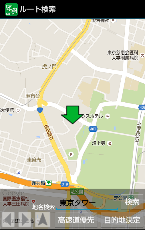 목적지를 설정하고 경로 검색할 수 있습니다. 루트의 단속 정보를 한눈에 알 수 있습니다. 톱 화면의 메뉴 「루트 검색」에서 목적지의 설정 화면으로 진행하십시오. (Ver7.0 새로운 기능)