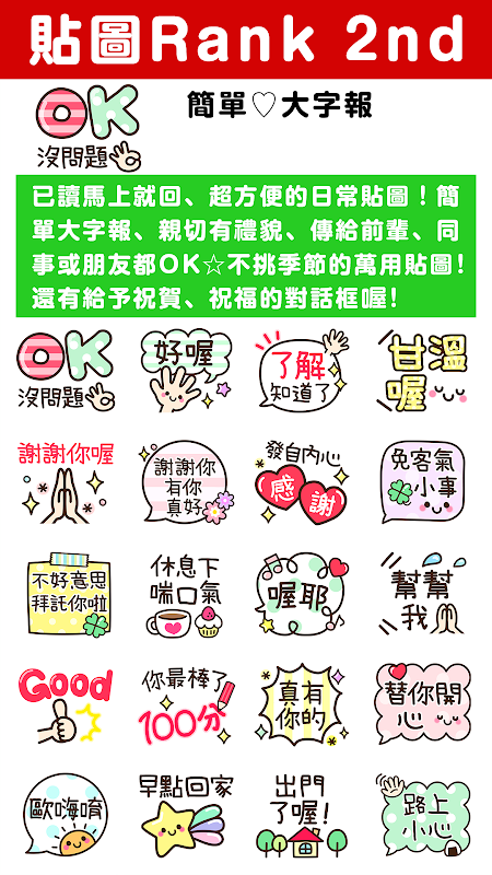손에 넣을 수 있는 인기 스티커 인기 스티커를 받을 수 있는 것은 대만과 일본의 인기 스티커입니다. LINE 앱과 같은 많은 인스턴트 메시징 앱에서 1등 도장을 많이 얻을 수 있습니다.