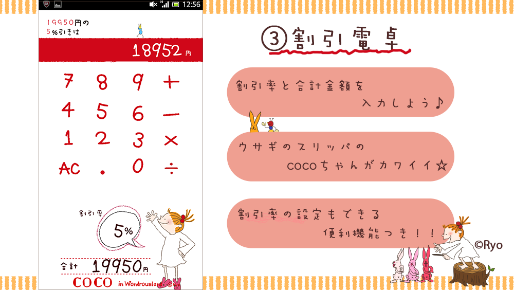 割引と割り勘も♪かわいいCOCOちゃん電卓 정보