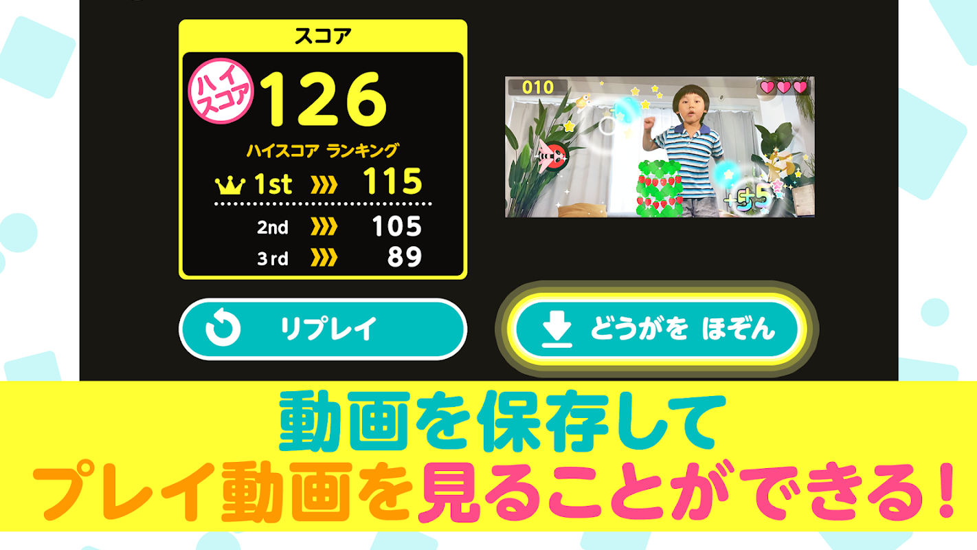 ・플레이 동영상을 다운로드해, 아이의 귀여운 표정이나 열심한 표정을 보답할 수 있습니다.