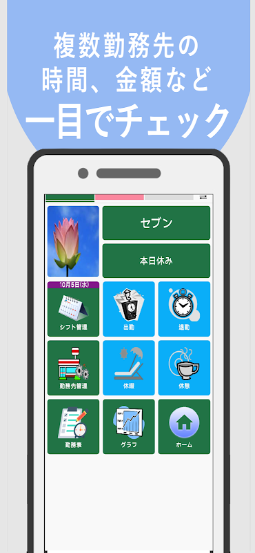・「출근」「퇴근」「휴가」「휴식」버튼을 준비.