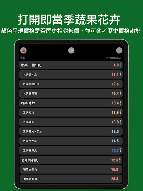 이 애플리케이션은 DoItWell Information Application Co., Ltd.(DoItWell.app)에서 개발했습니다. 데이터 소스는 농업위원회 및 농식품식품부의 공개 정보입니다. 대만 도매시장의 거래상황을 정리, 분석하여 실질적인 가격 참고자료를 제공합니다.