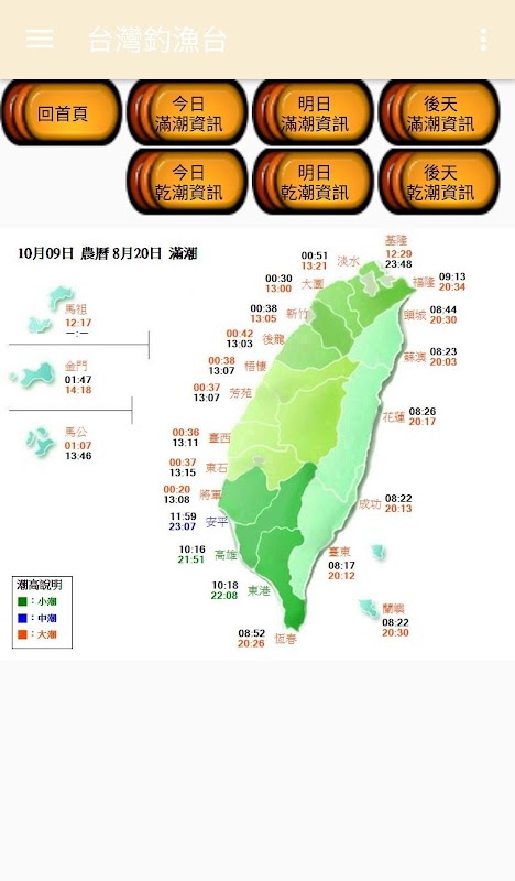 낚시 및 낚시 정보 제공 대만 해안 마와 날씨 정보를 사용자에게 제공