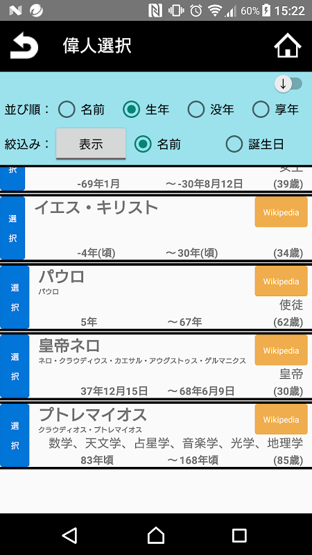 세월 지정 모드에서는 당시에 생존했던 위인의 나이도 알 수 있습니다.