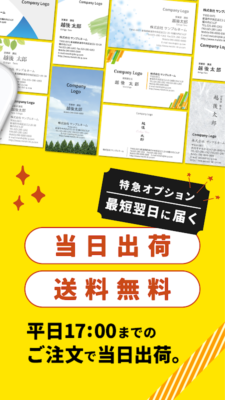 디자인하면 즉시 주문할 수 있는 간단 명함 작성 앱.PC나 전용 소프트, 프린터가 없어도, 스스로 디자인한 명함이 인쇄되어 수중에 도착합니다.
