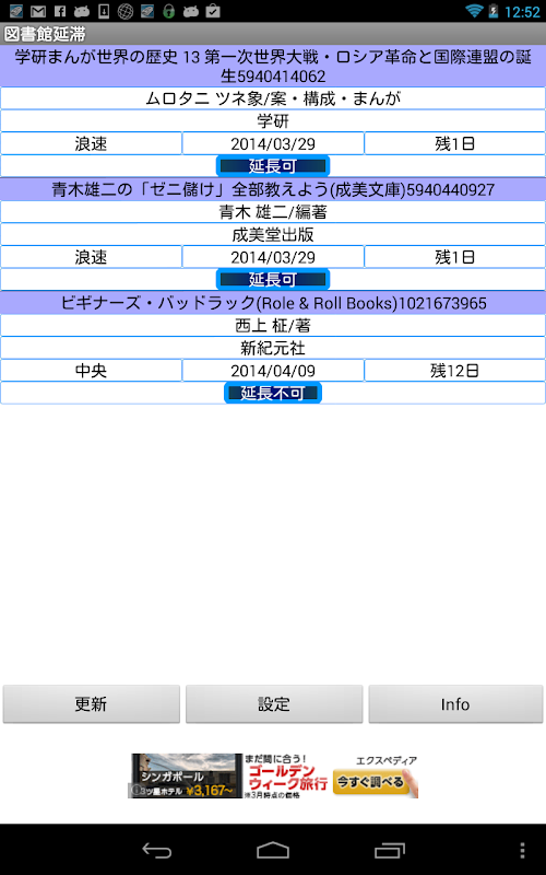 大阪市立図書館用、返却日管理及び延滞処理を行うアプリです。