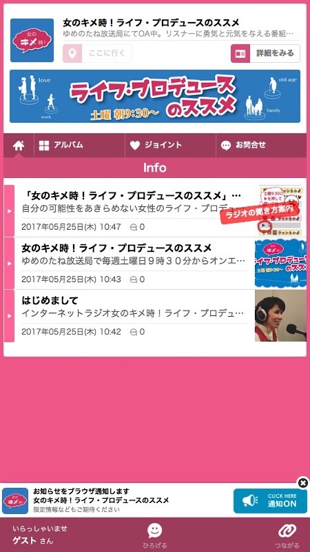 。番組は毎週土曜日9時30分から10時までオンエア中です。ゆめのたねラジオは、スマートフォン・パソコンから世界中で聴くことができます