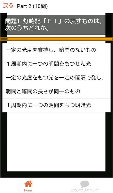 소형 선박 면허 시험 빈출 지식을 퀴즈 형식으로 도전하자!이 응용 프로그램은 소형 선박 시험 문제집 응용 프로그램입니다선박 면허 취득을 목표로하는 학생에게 매우 유용한 응용 프로그램입니다