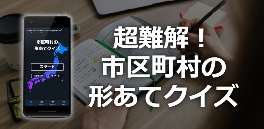 도시의 형태 대고 퀴즈는 전국 1922있는 도시를 모양 (실루엣)에서 맞히는 퀴즈 게임 어플입니다. 어렵지만지도와 인구 등의 팁도 있습니다.