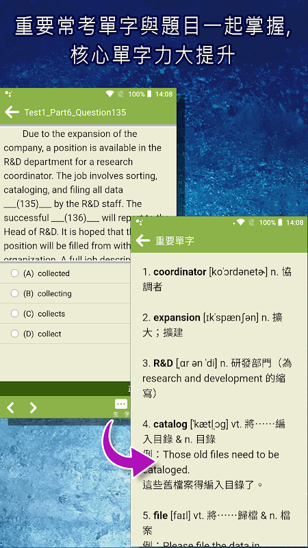 2. 시험 인터페이스는 영어로 되어 있으며, 답을 한 후 중국어 번역과 해설을 읽을 수 있습니다.
