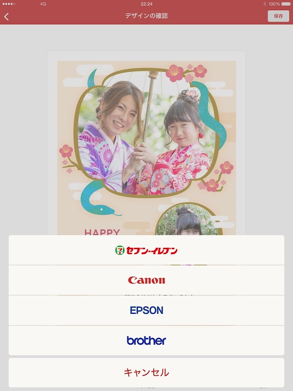 「엽서 디자인 킷」으로 디자인한 연하장을 「세븐-일레븐」으로 프린트(유료) 할 수 있습니다!