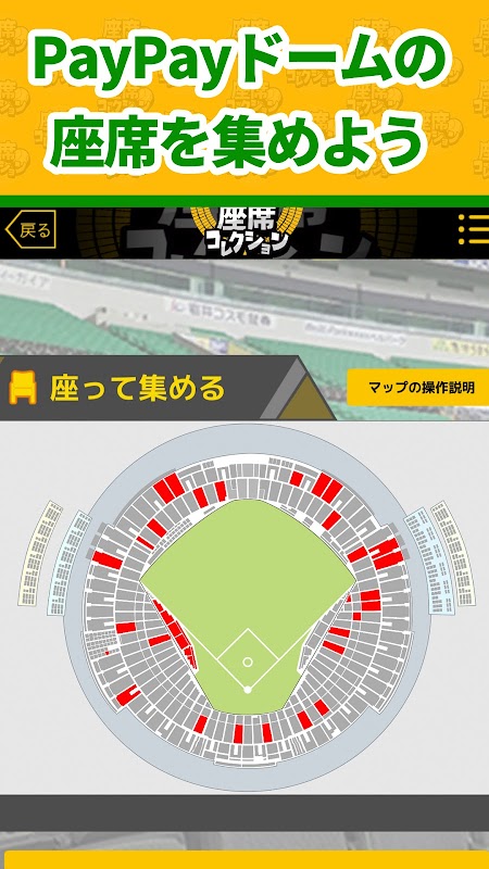 좌석을 모으는 새로운 감각 게임! 집에서 경기 관전에서 PayPay 돔의 좌석을 모아 자신만의 컬렉션을 만들어 가자!