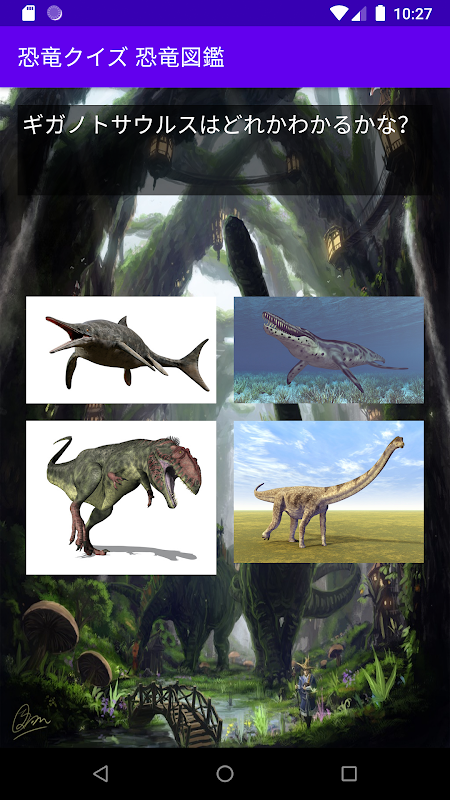 공룡 퀴즈. 티라노사우루스등의 메이저인 공룡으로부터, 조금 사소한 공룡까지 폭넓게 출제하고 있습니다. 여가 시간에 부디.