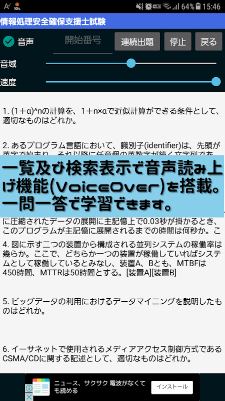 付録で他試験の午前問題(セキュリティ関連)も509問収録し、合計1541問収録しております。セキュリティ用語を収録しWiki検索する機能を搭載してます。セキュリティ関連に特化したアプリとなっておりますので効率良く学習ができます。