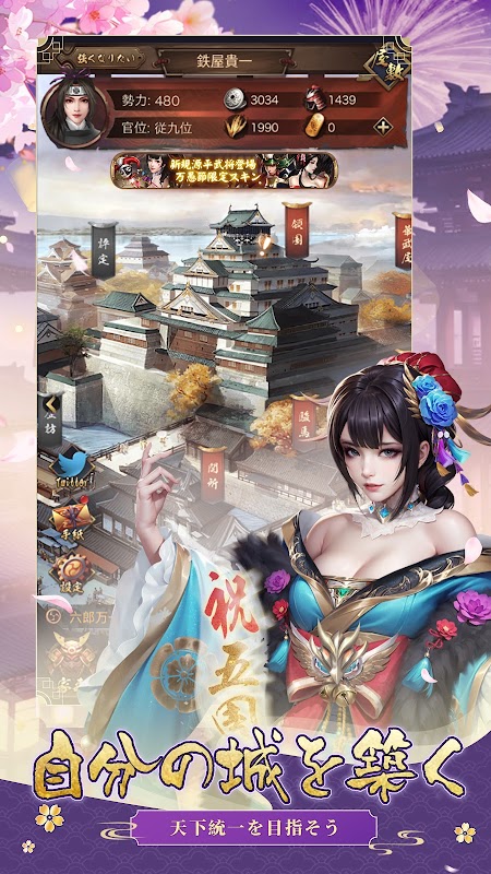 다운로드수 100만 넘는 초인기 세로 화면형 역사 시뮬레이션 RPG【완성~화와 무의 전국】으로, 난세를 물들이는 미인이나, 용맹과 감당한 무장들과 함께 격동의 난세를 완성해라!