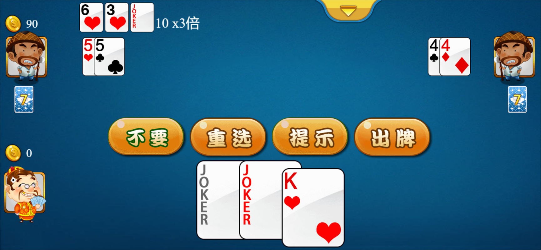 Dou Dizhu는 중국에서 인기 있는 카드 게임입니다. 게임은 54장의 카드(큰 왕과 작은 왕 포함)를 사용하여 3명의 플레이어가 플레이하며, 그 중 하나는 집주인이고 다른 두 장은 다른 하나입니다.