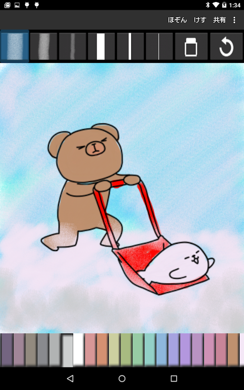 くまと仲間たちの1コママンガを、読んで塗る、マンガ塗り絵アプリです。