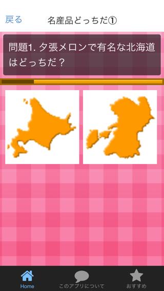 このアプリは日本全国の名産品をクイズ形式にした無料学習アプリです。