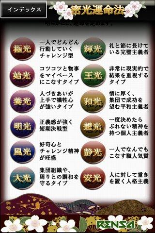 本アプリでは「密光運命法」にて、あなたに定められし密光を導き出します。