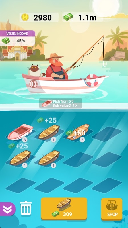 게임 주인공을 조종해 화면을 클릭해 낚시를 시작하고, 화면을 좌우로 슬라이드해 갈고리를 조종해 이동하며, 갈고리가 올라가면서 화면 위의 다양한 물고기를 포획하는 육성 및 운영 캐쥬얼 게임이다. 동시에 포획된 물고기는 게임 코인을 받고 게임 내 낚시 속성을 업그레이드하며 더 높은 가치의 물고기를 낚게 됩니다.