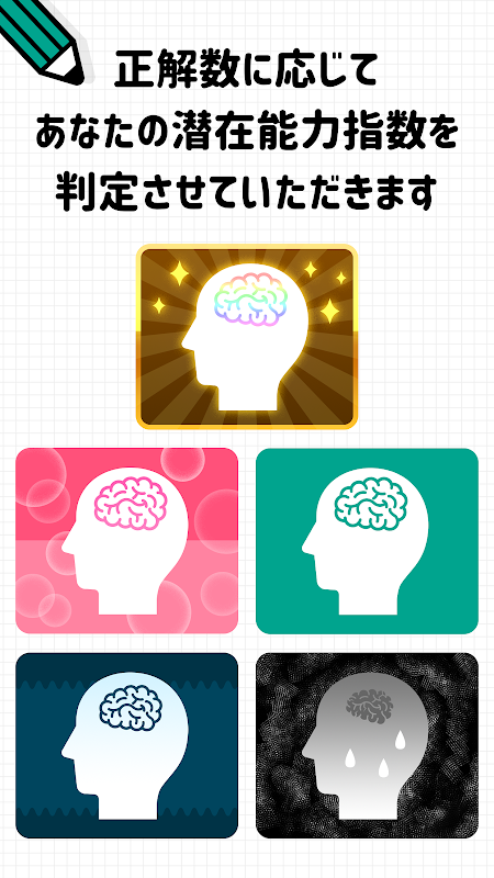 全50問の簡単な4択テストをクリアするだけで、最後にあなたの潜在能力が判明します。