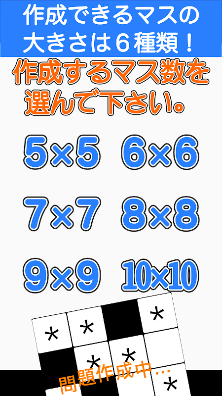 5×5、6×6、7×7、8×8、9×9、10×10マス。