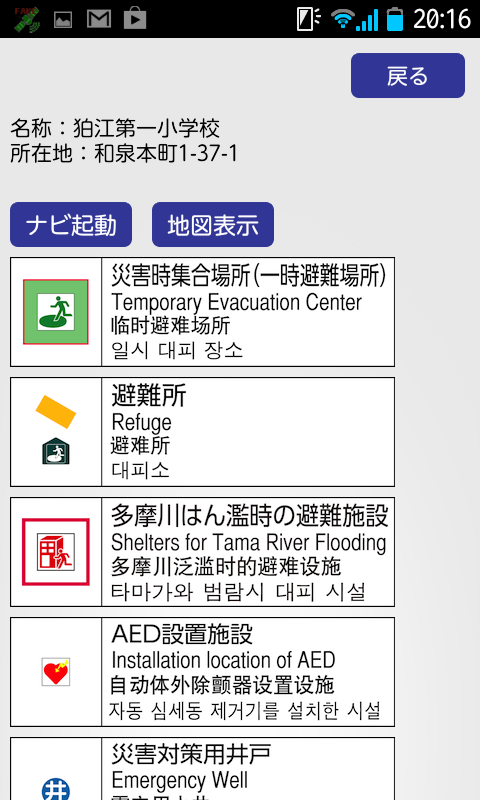 고마 시내의 재해 집합 장소 및 대피소 등의 위치를 나타낸지도를 스마트 폰으로 볼 응용 프로그램입니다.