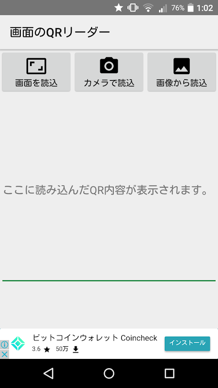 「画面を読込」を押すと、画面に映っているQRコードを読み込むことが出来ます。