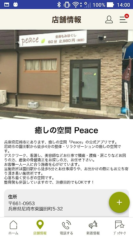응용 프로그램을 통해 효고현 아마 가사키시에있는 치유의 공간 Peace의 신착 정보 및 거래 정보를 실시간으로받을 수 있습니다.